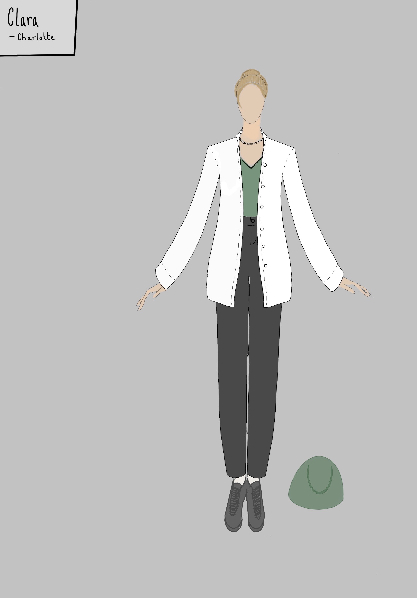 Im Folgenden ist eine Übersicht über unsere Charaktere, mitsamt ursprünglichen Entwürfen und Gedanken hin zur schlussendlichen Umsetzung zu sehen. Die Nachnamen der Charaktere sind Anagramme der jeweiligen Rollenbezeichnung.