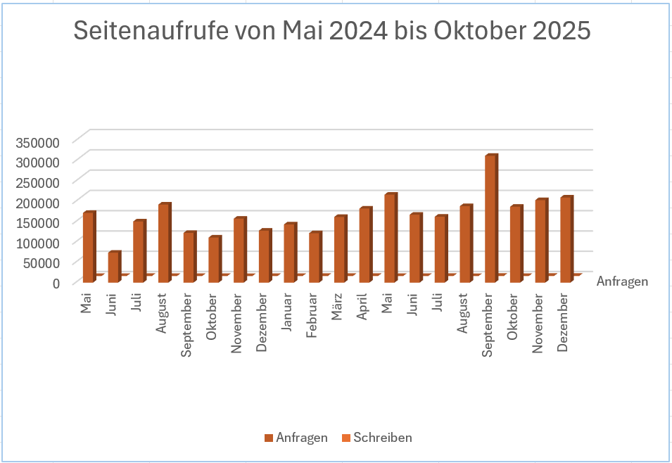 Auf dieser Seite kannst du dich darüber informieren, wie die OMA genutzt wird, das heißt, wie viele Anfragen es im Monat gibt, wie viele Menschen zum Bearbeiten im öffentlichen Bereich auf den Stift geklickt haben und welche Dokumente am häufigsten aufgerufen worden sind. Und falls du dich fragen solltest, warum man den farbigen Bearbeiten-Balken im Diagramm links nicht sehen kann, liegt das daran, dass bisher nur ca. 2 % der Nutzerinnen und Nutzer die Möglichkeit genutzt haben, sich an der Community-Arbeit zu beteiligen. Du hast es in der Hand, diese Zahl zu ändern: mach mit!