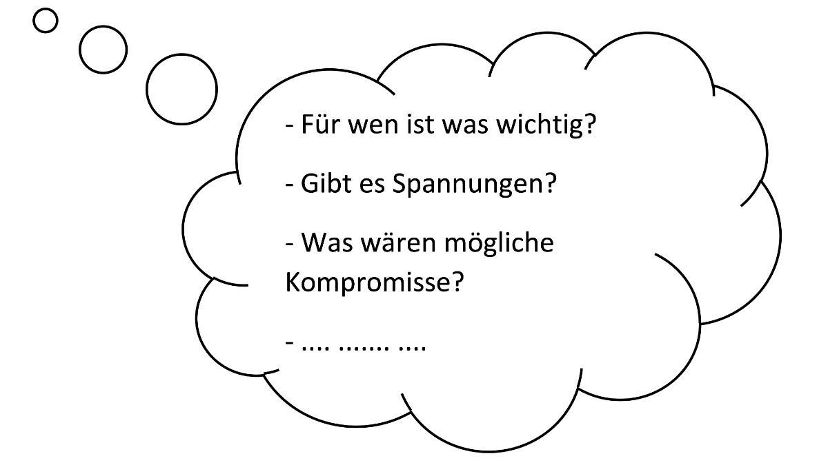 - Welche Gedanken hattet ihr? Zu welchen Ergebnissen seid ihr gekommen?